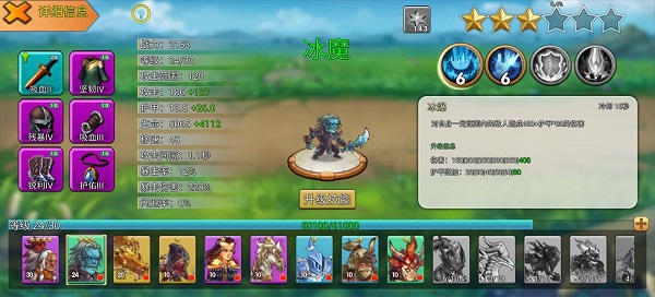 1、英雄一定要用冰魔,绿色英雄,技能范围伤害,新手神级英雄了,前期过渡最强,他的优点就是技能非常好升级,非常好升星,培养难度极低,下面视频里可以看到冰魔对于前期的一个强度,技能一下一片,简直乱杀。