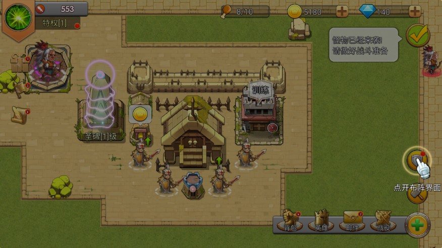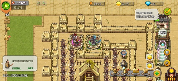 8、不同于常规的传统塔防,在这里敌人进攻的方向可能是四面八方,想要成功阻击敌人,还应在战力部署上下足功夫,点开【布阵界面】,然后将士兵放置在画面中;