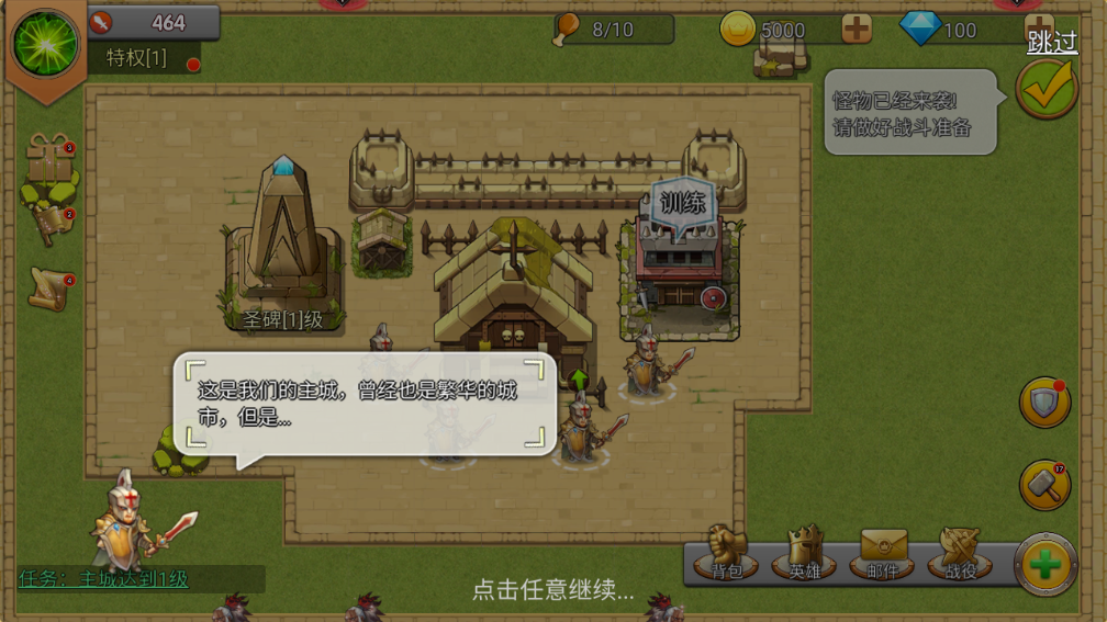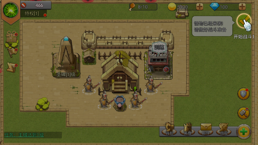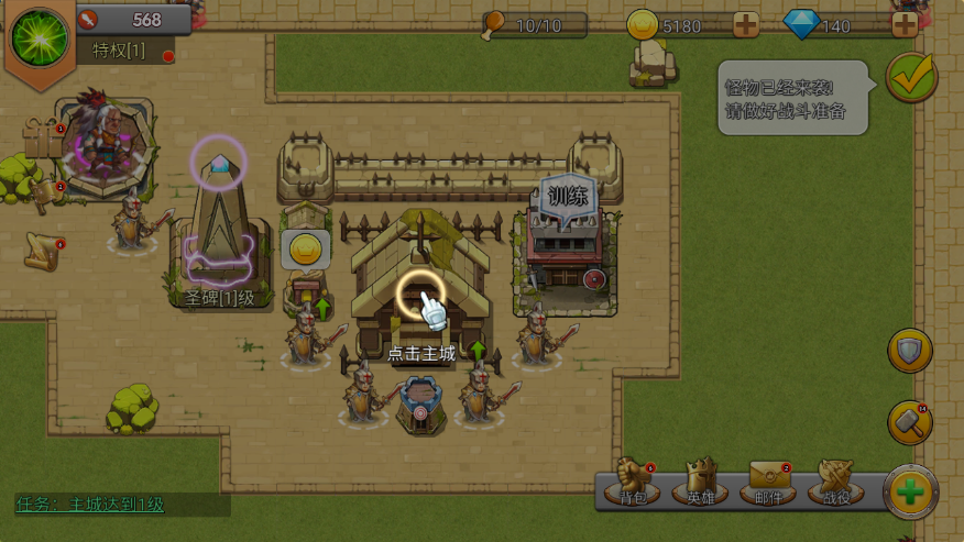 9、最后,提升城堡等级能够建造更多的防御建筑,增强城市防御,先将主城升级一次,点击【主城】,需要花费1000块钱;
