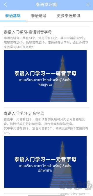 主界面的【学习圈】功能区中,提供了许多的优质泰语知识,从0基础到进阶都有收纳,值得大家查阅,相信一定会有所收获。