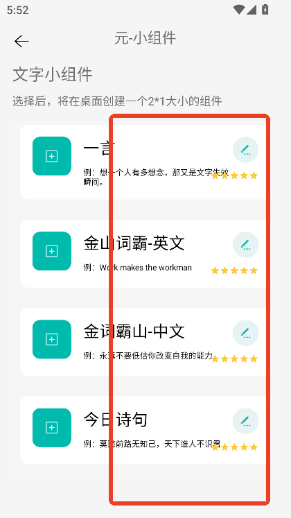例如进入桌面组件板块,可以直接选择文字内容组件