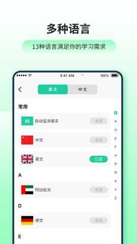 语音翻译:实时语音输入,自动转换为目标语言并朗读。