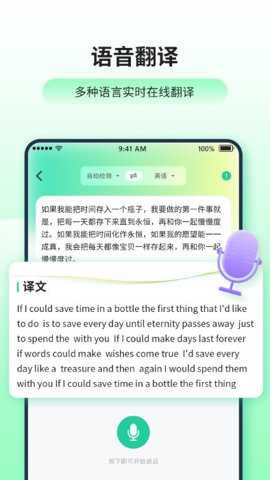文本翻译:输入文字即可快速翻译,支持长文本和短句翻译。