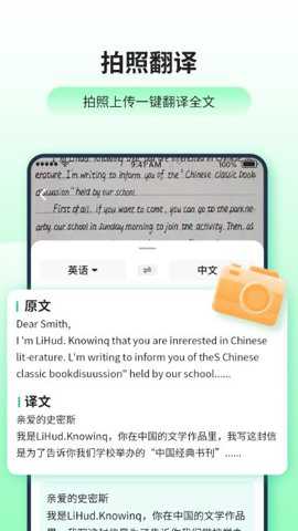 图片翻译:拍照或上传图片,自动提取文字并翻译。