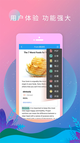 坚持聆听是提高听力水平的不二法门,软件通过提供有声新闻,持续提高用户的听力水平,从而推动整体英语水平的进步。
