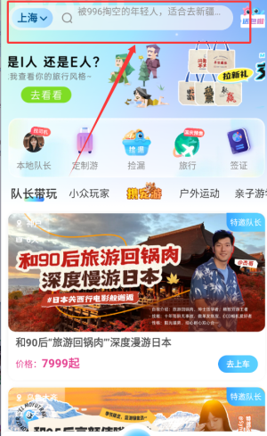 1、通过顶部搜索栏输入名称,即可快速查找心仪旅行目的地。