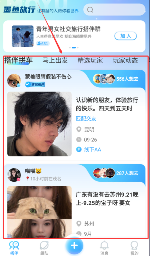 2、可在平台中选择搭伴出行方式,结识志趣相投的旅行伙伴。