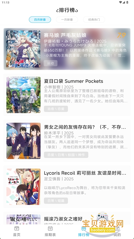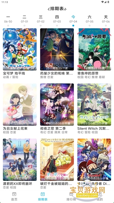 2、该页面为是新番的排期表,每天都会有当季的番剧实时更新,也会有很多还在更新的老牌动漫哦。
