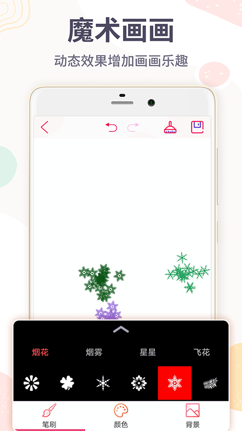 - 多种动态画笔随你选,烟花、烟雾、星星、飞花等
