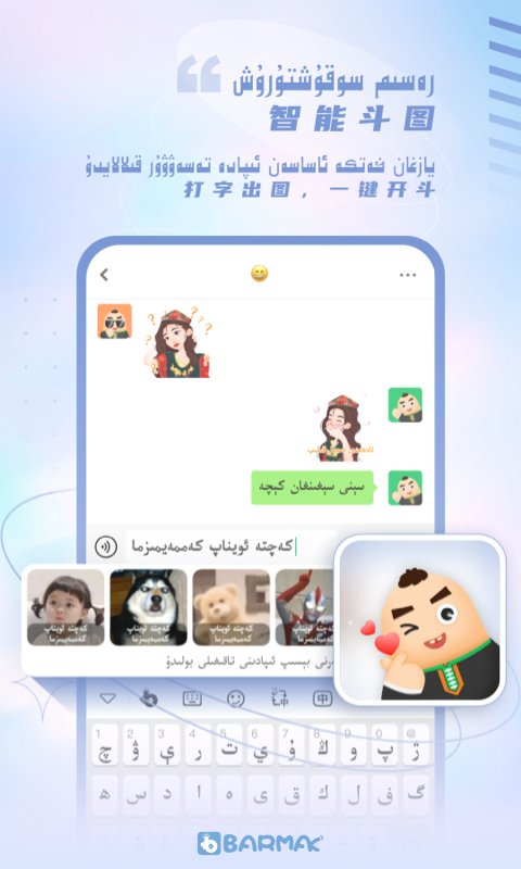 BARMAK输入法app绿色版是一款专业实用的维吾尔语言工具,用户能使用维语进行输入打字,其功能超级强大,能让用户快速上手,可快速支持各种各样的输入法,为维吾尔语用户提供更舒适便捷的输入体验,无论是日常交流、工作办公还是学习创作等场景,都能满足维语输入需求,是维语使用者的得力助手。