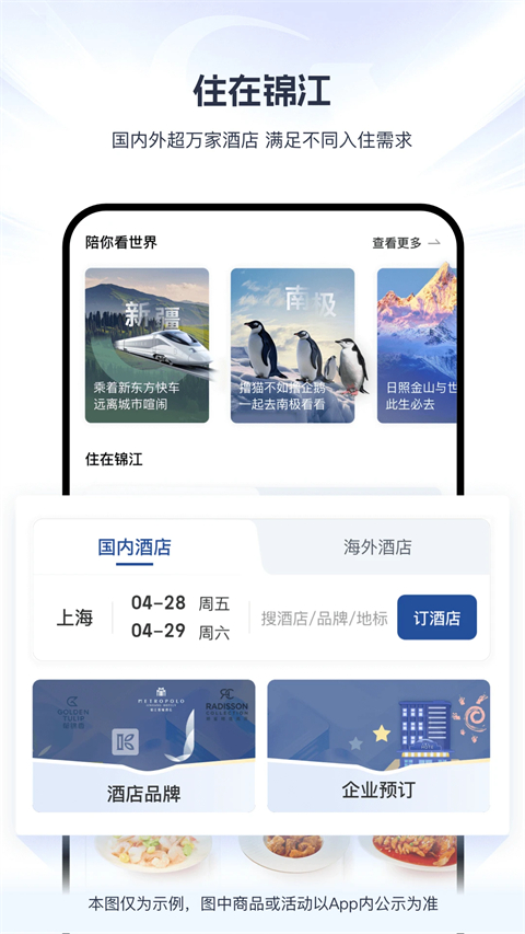 锦江荟App是一款锦江酒店官方订房应用,覆盖酒店品牌涵盖有J、锦江、昆仑、丽笙、锦江都城、康铂、麗枫等40余种,为用户提供涵盖吃、住、行、游的预订服务。用户首次登录还可享受享受订酒店、购美食、旅游、积分商城等众多优惠,消费累积会员积分,还有积分商城等多项会员权益等待领取。