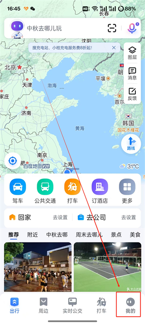 1、打开手机上下载的最新版本百度地图app,点击下方的【我的】;