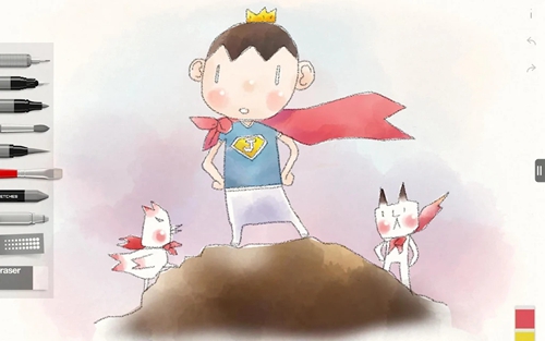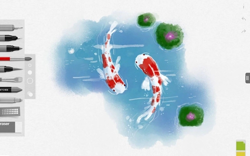 有些许禅意的独特用户界面:工具在您创作图画时是隐藏的,只显示最少量的按钮用于呈现洁净的画布。