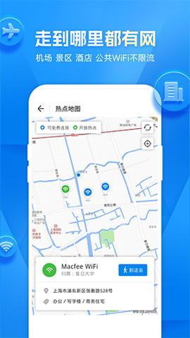 3、值得一提的是,WiFi万能钥匙在全国范围内拥有近千万级的公共WiFi热点。真正实现随时随地无忧上网。