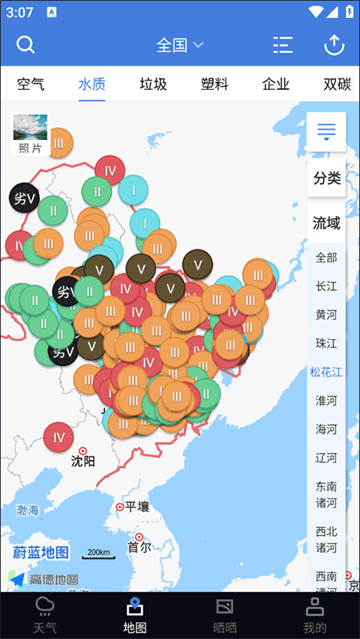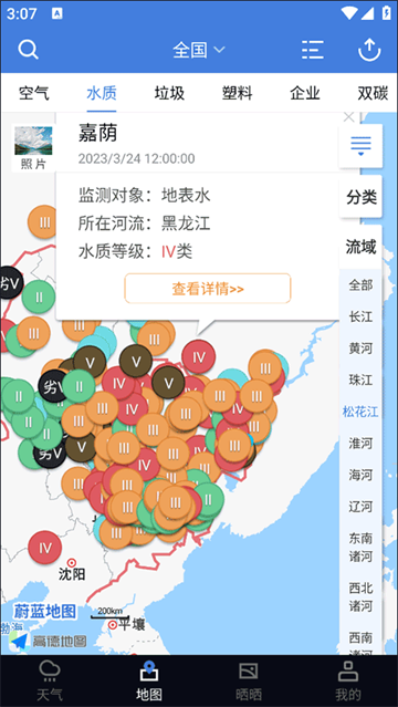 1、打开在289下载安装好的应用,在地图界面选择水质一栏即可看到水质情况