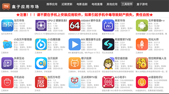 盒子应用市场,是汇聚海量优质应用的宝藏平台。这里应用种类丰富,涵盖游戏、学习、生活等多领域,满足不同用户的多样需求。平台具备严格的应用审核机制,保障每款应用安全无毒,让你放心下载。同时,界面简洁易操作,下载速度快,更新及时。无论你是追求娱乐体验,还是提升工作学习效率,盒子应用市场都能为你提供最佳的应用选择,畅享便捷的数字生活。