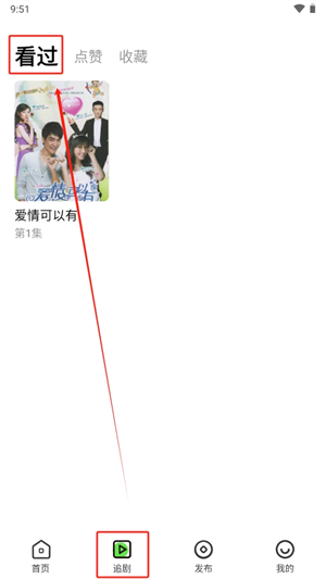 4、所有看过的短剧可以切换到【追剧】界面,通过【看过】找回记录;
