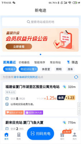 2、来到主页我们可以浏览到最近的充电桩