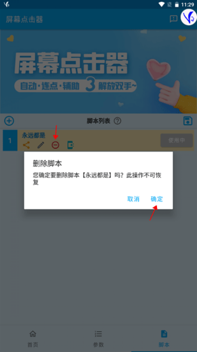 3、点击“-”键,可将相应的脚本移除,该动作无法还原。