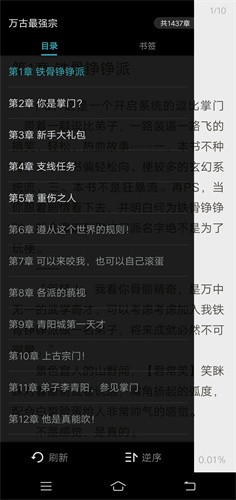 4、点击你喜欢的小说或者漫画资源,然后可以看到详细的书籍简介,以及章节目录排版。