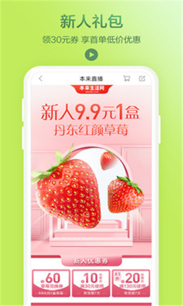 本来生活APP是一款非常安心的生鲜购物平台,为广大用户提供了海量的优质生鲜商品。软件内提供了众多的优质肉食蔬菜,各类水果与日用品也应有尽有。众多优惠券可让用户以最公正的价格拿到自己想要的果蔬商品,参与特卖活动挑选商品来丰富家庭的冰箱。所有的食材都经过官方的精心挑选,在保证健康安全的同时让用户吃的放心,用的安心,做最好的线上超市平台。