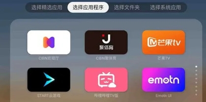 3、点击替换后会出现电视中的所有应用,可以选择默认精选应用、第三方应用以及文件夹和系统应用,选择一个应用后会替换桌面的应用完成修改。