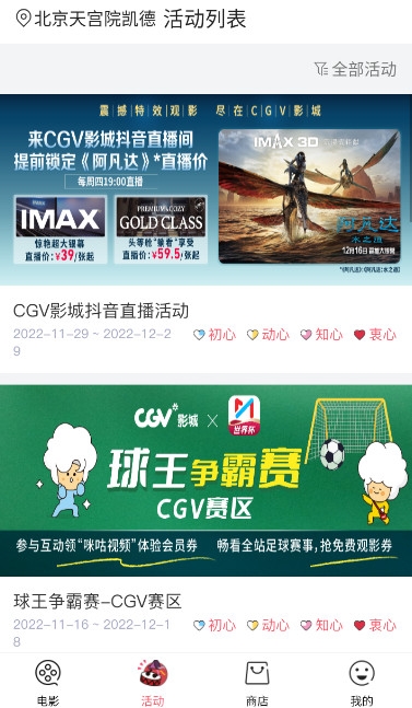 3、使用本 APP,即可享有由 CGV影院独家观看电影的特权,以及门票打折等诸多优惠。