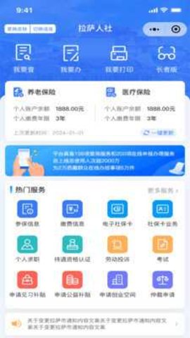 拉萨人社app一款专为拉萨人民所打造的一款一站式社保查询应用平台,该软件的功能十分的丰富且强大,在其内它在为用户提供参保信息查询、账户信息查询、社保缴费信息查询的同时还准备了待遇认证、常见问题咨询、权益记录单查看等超级实用的功能,通过这些功能可让用户实现“无需出门,即可参保”的便捷操作,以此最大程度的给予用户们最方便的待遇,十分的不错!拉萨人社APP还拥有着公积金贷、在线办卡、房贷计算、工伤待遇等功能,使用这些功能可以让用户们再也不用担心被其他机构所忽悠的问题哦。除此之外,为了让用户们可以在线实时的了解最新的社保政策,拉萨人社app在其内融入了海量最新、最权威的社保新闻动态和各地最新政策的法规,其设定可以便于用户更好的关注了解,从而让用户不会错过任何的有利政策!