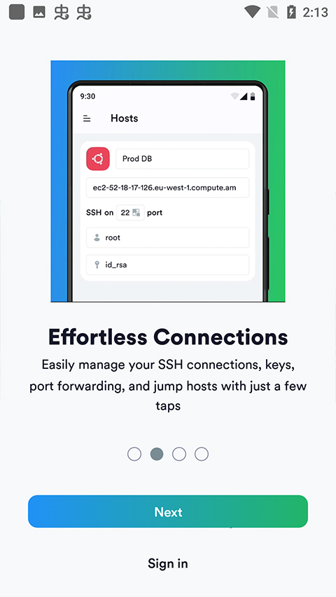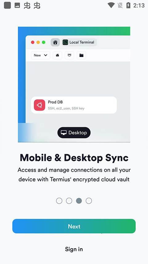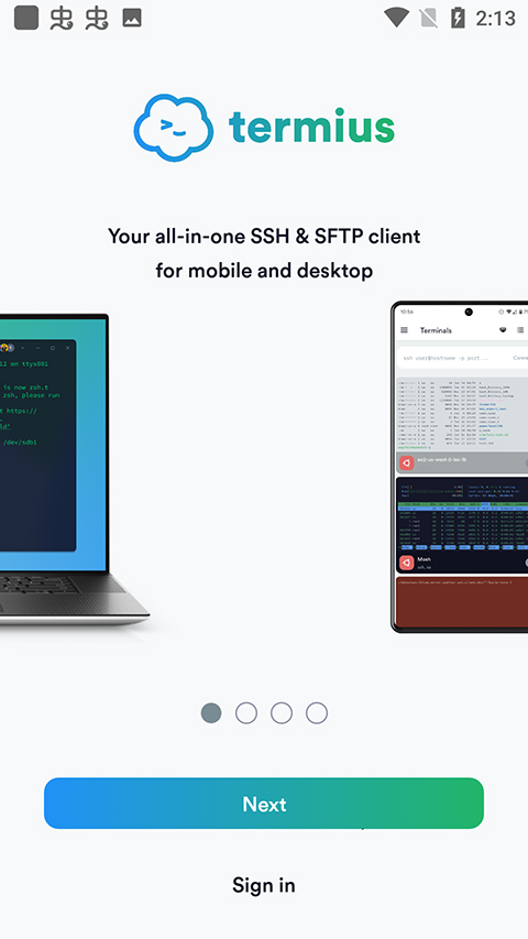 3、Termius app上都可以使用Termius享受精美的手工界面支持SSH、Mosh和Telnet会话。
