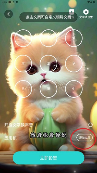 5、点击进行文字自定义,然后点击右边添加应用。