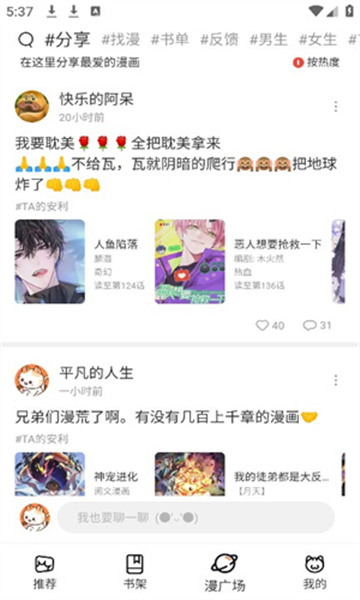 3、提供多种优质漫画资源,覆盖广泛的题材,强大的社区互动功能,与爱好者们相互交流和分享收藏。