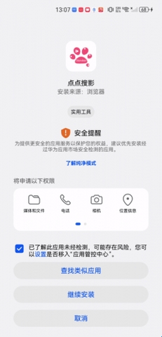 3、点击勾选“已了解此应用未经检测……”,点击“继续安装”。