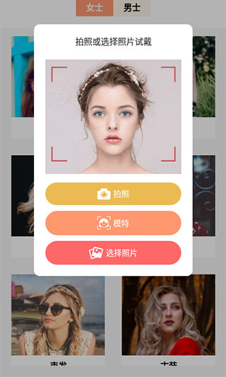 2、我这里选择的是网红发型,可以选择拍照进行试戴,或者选择照片也可以