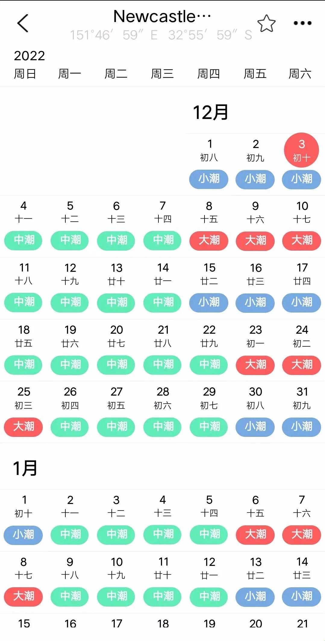 4、还可查看小潮,中潮和大潮情况。