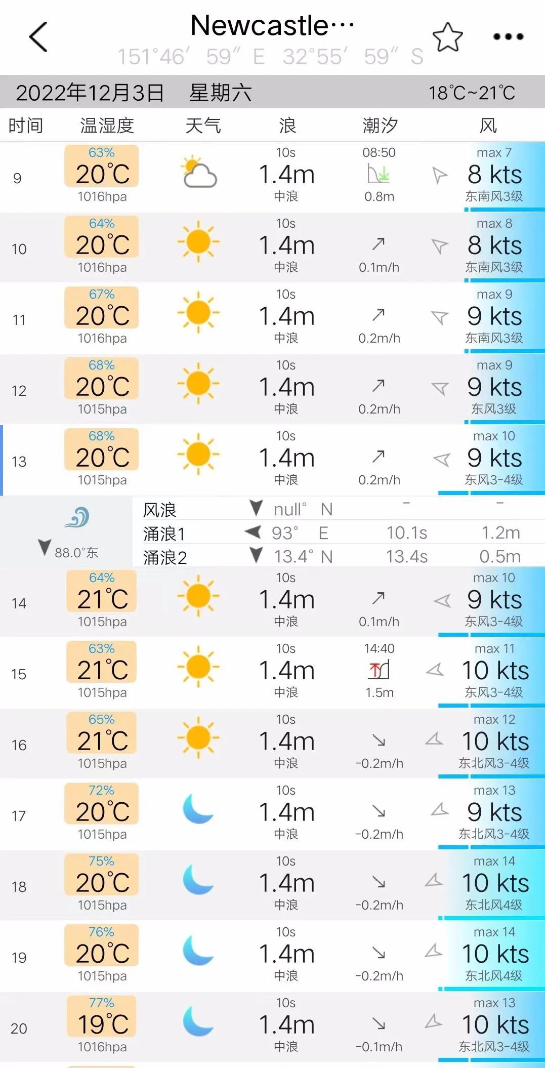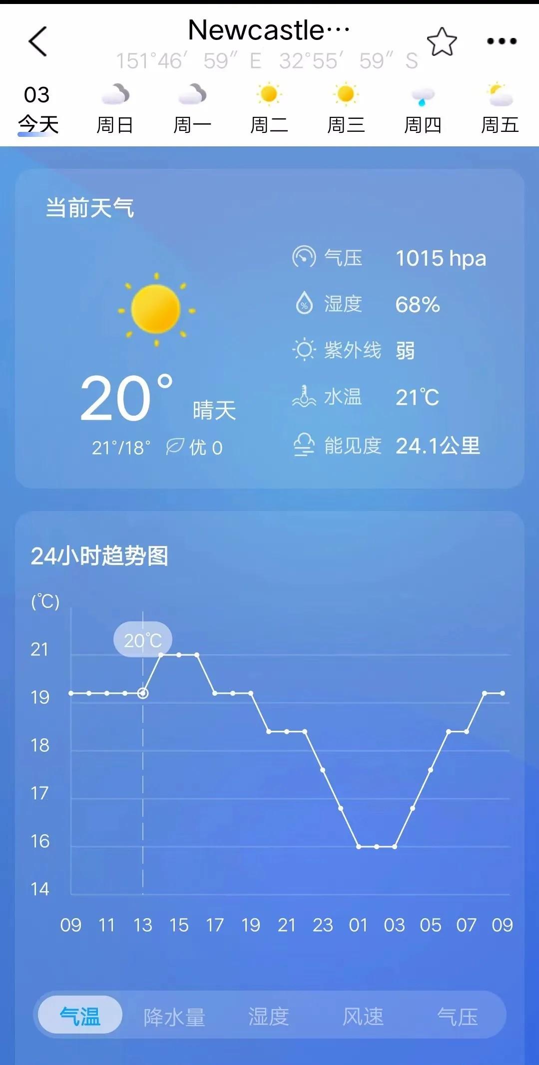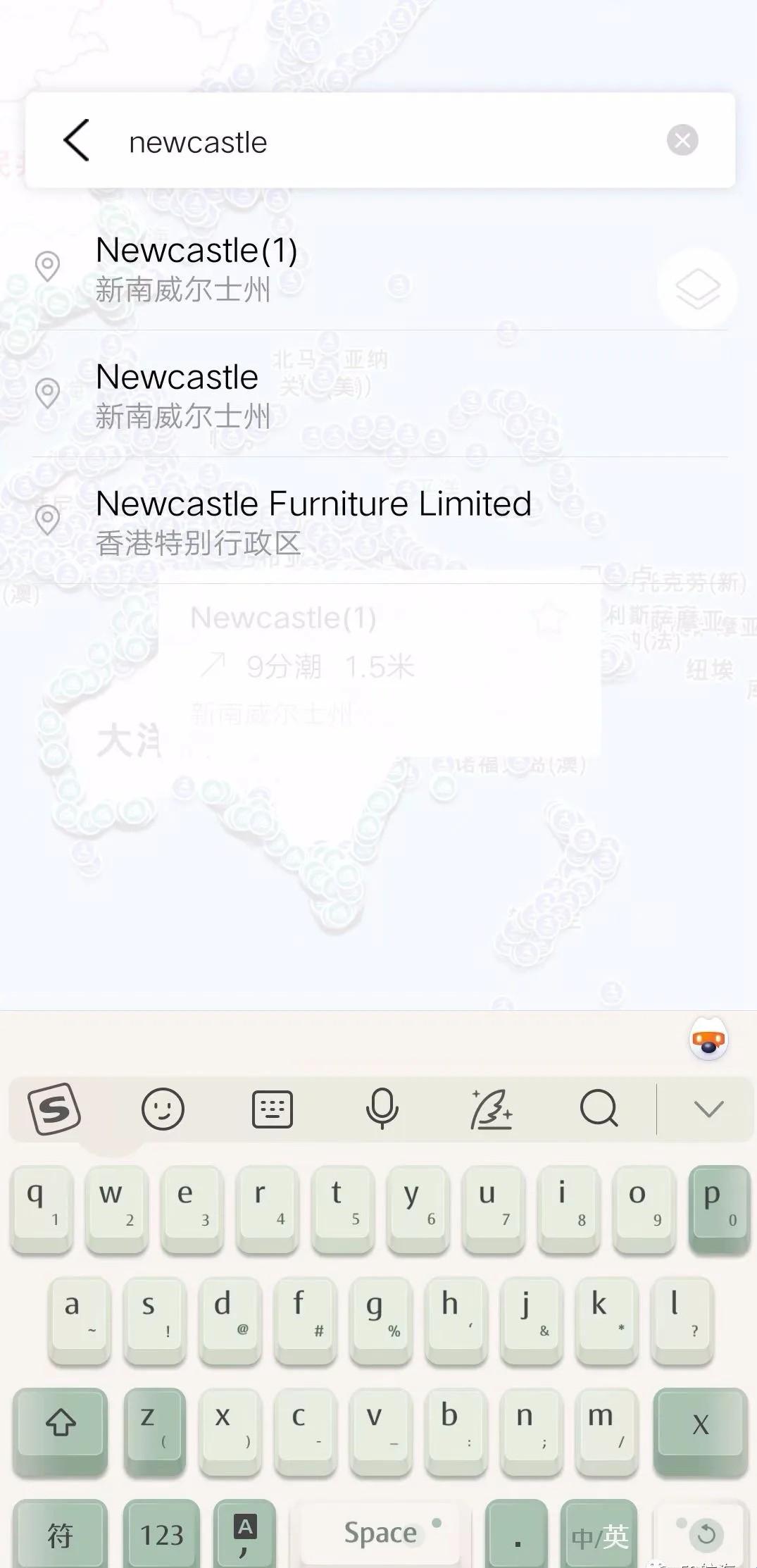 2、可利用顶部的关键词搜索功能直接查询,中英文名均可。例如查询Newcastle港天气与潮汐情况。