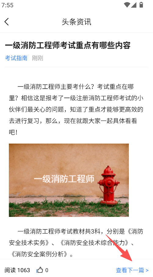 3、点击资讯详情,可阅读内容并查看下一篇。