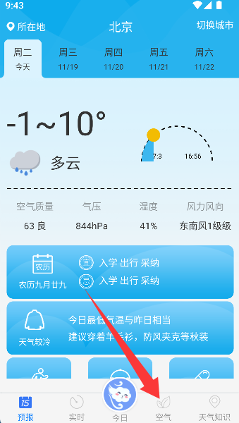 1、轻轻戳一下首页底下那个有点“娇气”的空气按钮,它就会给你呈上一份详细的空气质量“体检报告”。