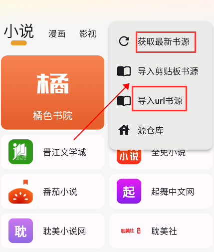 3、用户可以直接选择获取最新书源,也可以选择导入URL书源。