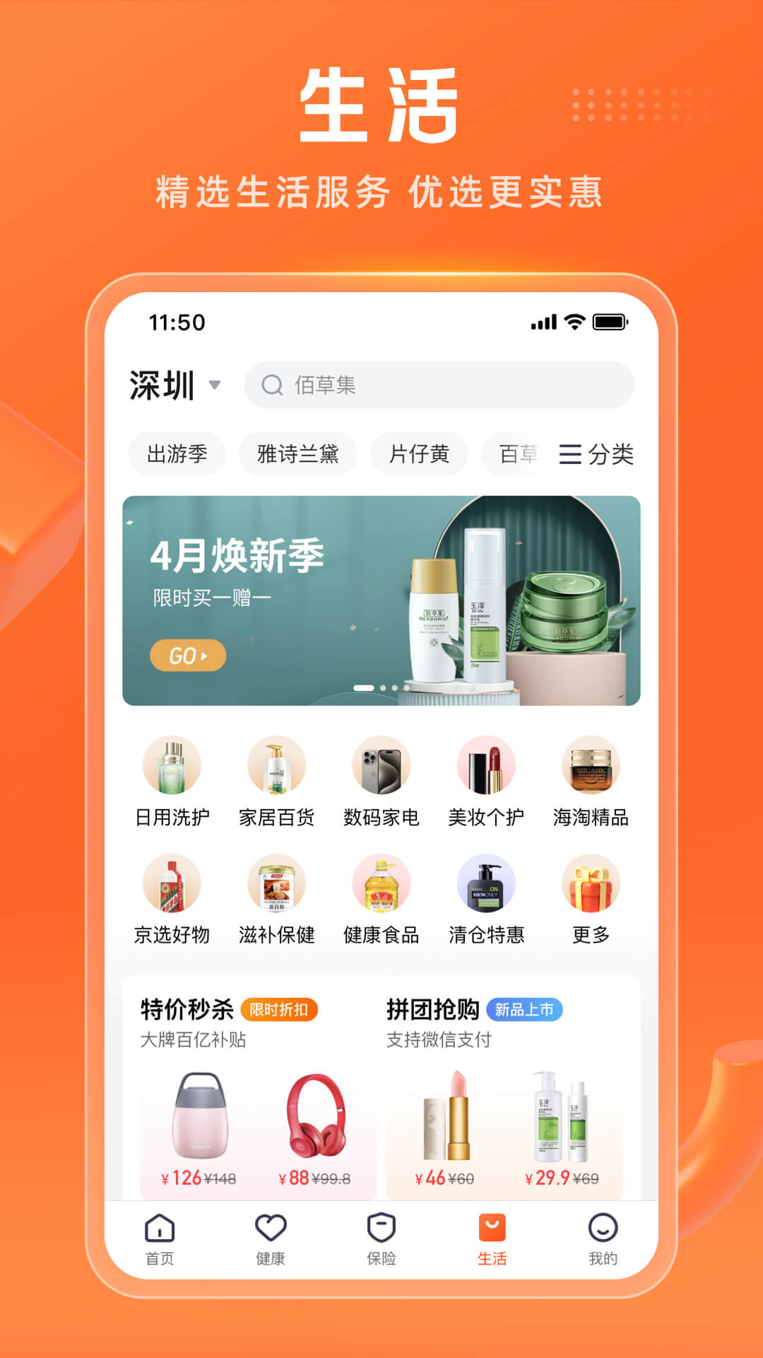 a、精选商品优惠多,便捷服务随时享,还给用户提供了健康的家庭医生,全部都是可以来咨询的;