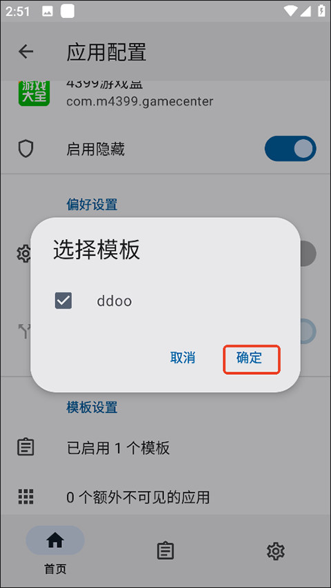 1、打开隐藏应用列表选择模板管理