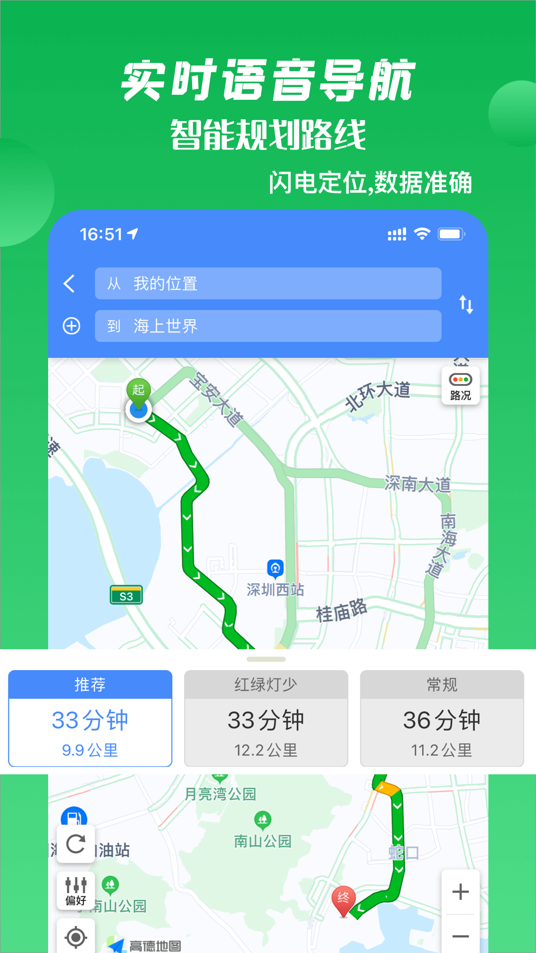 1、出行导航:实时避让拥堵,人工智能语育导航,伴你一路顺畅