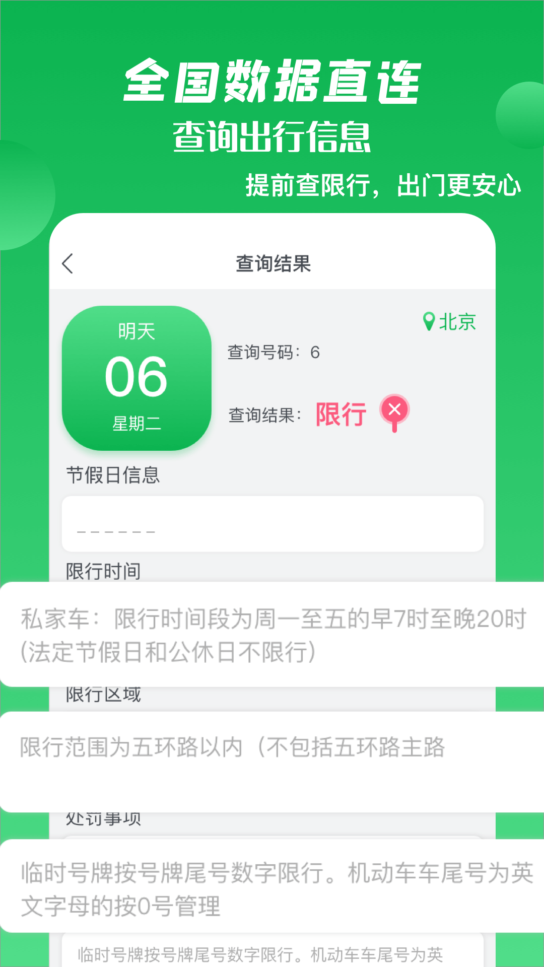通过汽车的车牌尾号查询今日限行的号码及详情,现已支持全国15个城市。