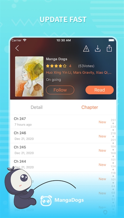 漫画狗的英文名字叫做Manga Dogs,这是为漫迷们量身打造的免费追漫神器,内置超10万本连载、完结漫画,还分为男频与女频两个不同的漫画版块,让你找到自己喜欢的漫画题材。漫画图片高清呈现,自适应手机屏幕大小,还可以开启夜间、护眼阅读模式,沉浸于最佳的视觉盛宴。时下热漫潮流,紧跟国内外漫画站点更新,每天推荐一本热门佳作,时刻掌握漫画界的最新动态。