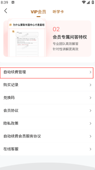 作业帮口算APP怎么取消自动续费?
