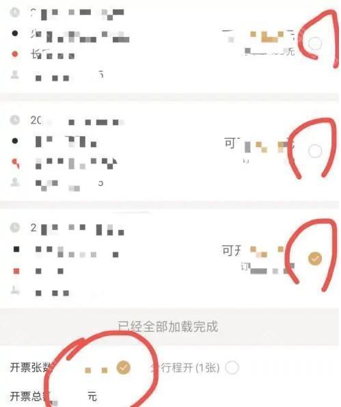 3、进入发票选择区域,可对开票进行选择,可“按金额开票“也可”按行程开票”
