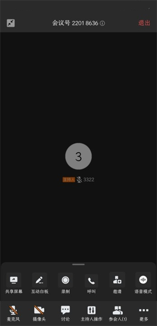 4、在会议室内可以进行各种主持人操作、共享屏幕以及互动白板等操作。