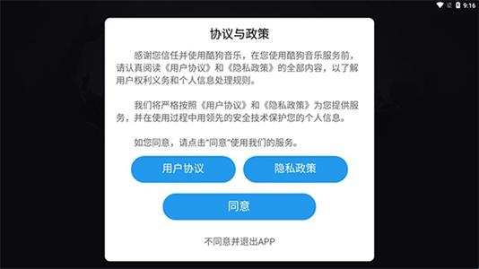 1、下载安装本站提供的酷狗音乐车机版2024最新版,进入软件后需要同意用户协议;