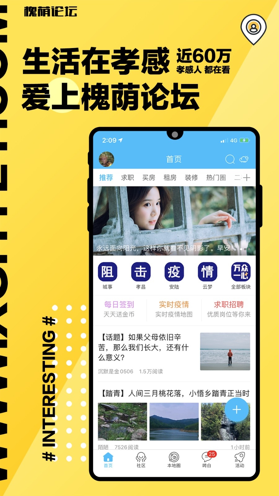 孝感槐荫论坛app是一款专为孝感本地用户打造的生活论坛以及招聘平台,在该平台当中整理了大量的本地生活资讯以及招聘信息,本地用户可以根据自己的需求进行查询信息或者投递简历。并且该平台当中所以的信息都是第一时间更新的,并且更新的内容都是经过审核后才会让用户查看的,确保用户查看的都是精准的内容信息。