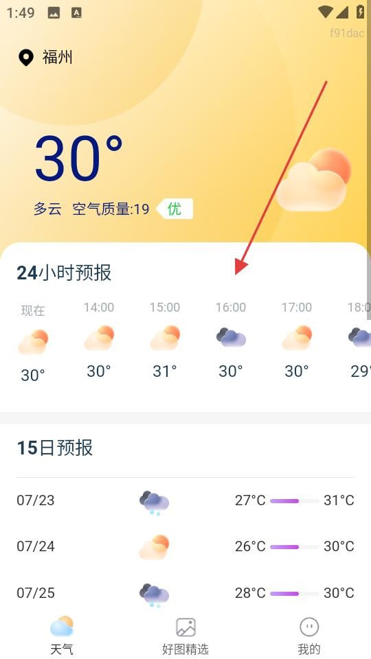 3、可依据实时天气及预报,参考生活指南规划出行,还能在好图精选中更换壁纸,更具个性,丰富使用体验。