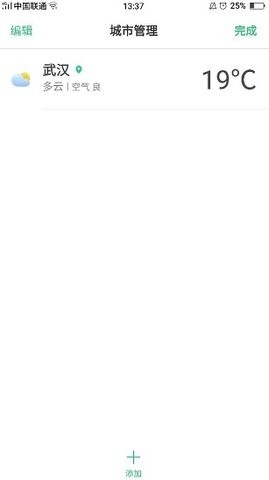 1、OPPO手机专用的天气预报软件,打开软件就可以查看所在城市的天气信息。
